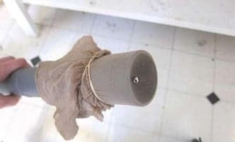 Steg 2. Bruk gummistrikken til å holde strømpebuksen på plass rundt munningen av støvsugeren.